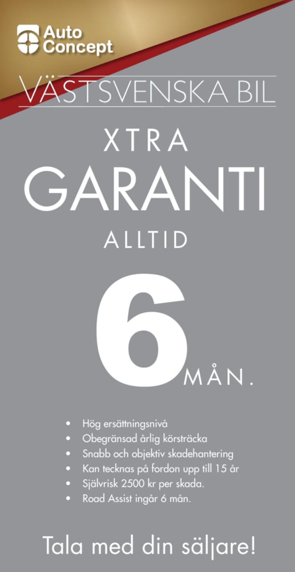 För Västsvenska Bil är det väldigt viktigt att du som kund känner trygghet i samband med bilköpet. I samarbete med AutoConcept har du möjlighet att teckna upp till 36 månaders garanti.